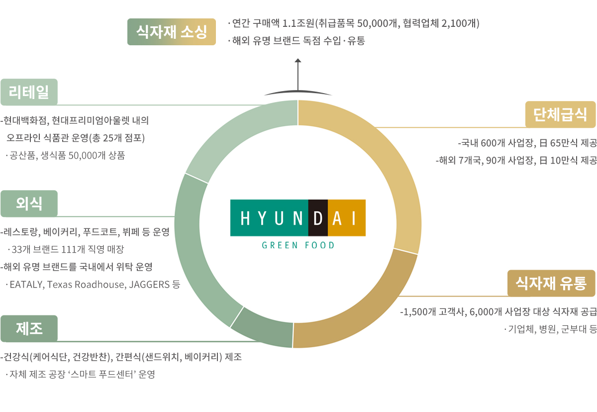 현대그린푸드는 종합식품기업으로 단체급식, 식자재유통, 리테일, 외식, 건강식 등