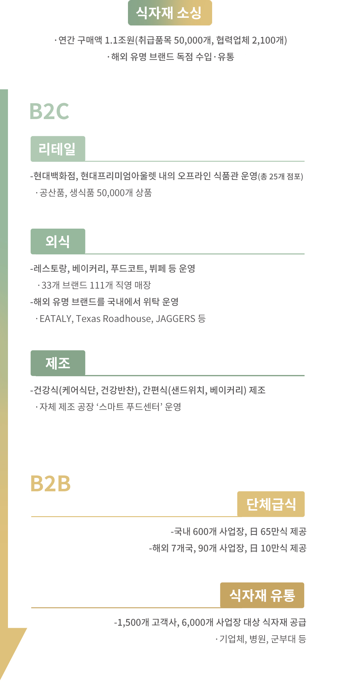 단체급식과 식자재유통, 리테일, 외식, 건강식에 이르기까지